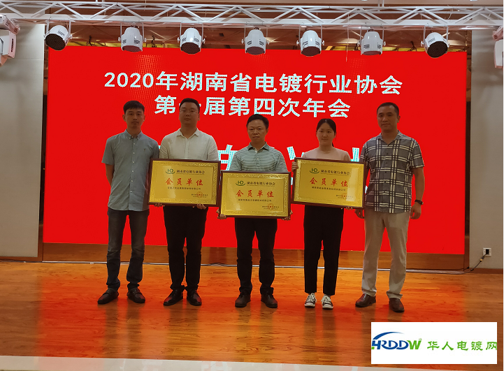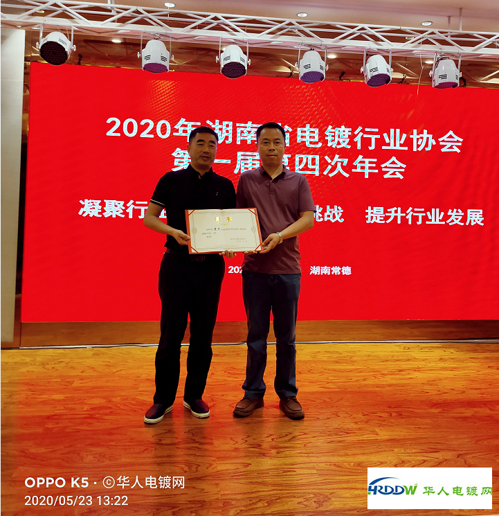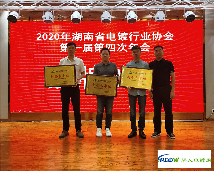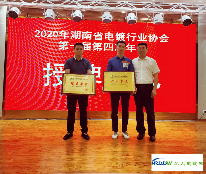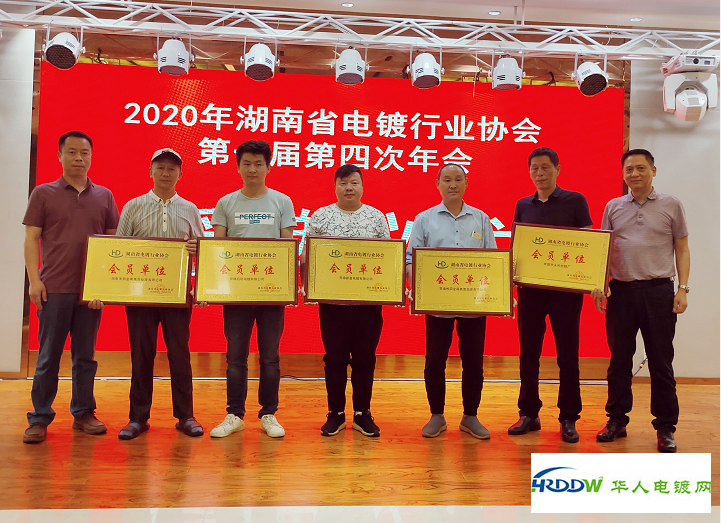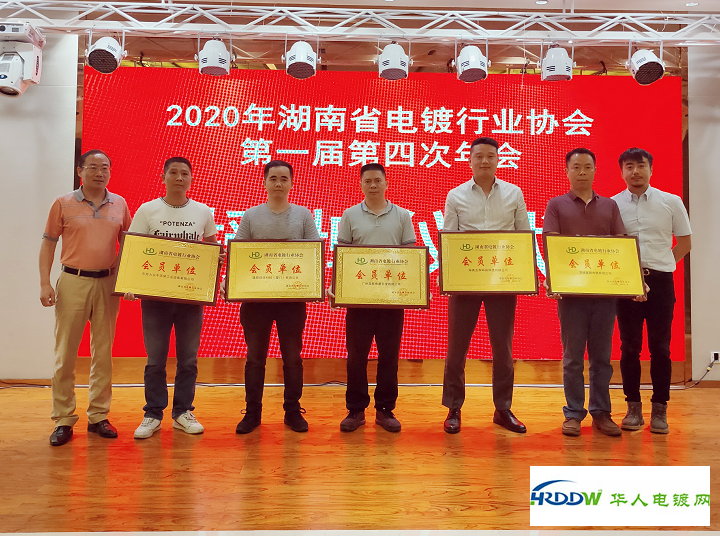 新加入的理事单位授牌的有:常德市东新金属表面处理有限公司,湖南同赞智能装备有限公司,由秘书长张朝晖先生为两家单位授牌