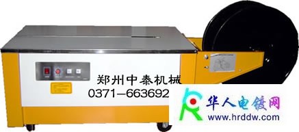 本打包机为半自动捆扎机,在插入包装带后能自动完成聚带、热合、切断、出带的捆扎过程,且能自动停机。在国外样机的基础上重新改进设计制造而成,使用范围广,不管大小包装,不用调整机器就可以打包该机属机械式结构,部分采用进口零件,后刀刃稳定可靠,调整方便等特点。