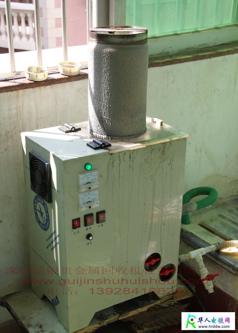 深圳瑞银贵金属回收机设备有限公司,电话:13928416829 专业从事镀金水、镀银水、菲林水等含有贵金属废水的回收机设备,自1999年至今不断的学习、创新、吸收消化国内外先进科技成果,经过上百次的实验、更新技术,自主研发生产高频脉冲贵金属电解回收机设备,采用全自动的知能控制方式,能有效的将银(或金)离子直接还原成金属块,纯度高达99.8%以上的闪闪发光的金、银!是镀金水、镀金水、菲林水等回收的最佳选择!