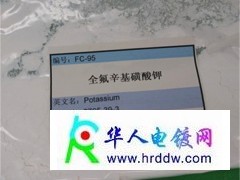 3. FC-95全氟辛基磺酸钾系全氟阴离子表面活性剂,主要用作电镀中的铬雾抑制剂、润湿剂、氟蛋白型泡沫灭火剂中的添加剂。