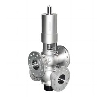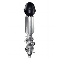 气动双座阀,设计用来满足当有两种不同介质流经同一只阀门时,既保证防止流体的混合又便于监测其工作情况。该阀门应用于乳制品、饮料、啤酒、等各种高洁净要求的工艺管路系统上Pneumatic double seat valve is designed to ensure the prevention of fluid mixing and facilitate monitoring of its operation when two different media flow through the same valve. This valve is applied to various process pipeline systems with high cleanliness requirements, such as dairy products, beverages, beer, etc