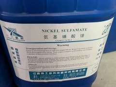 氨基磺酸镍是一种优良的电镀主盐,为深绿色透明液体,在高温或较低的pH值下易水解。易溶于水,液氨,乙醇,微溶于丙酮,水溶液呈酸性,有吸湿性,潮湿空气中很快潮解。干燥空气中缓慢风化,受热时会失去四个分子水,温度高于110摄氏度时开始分解并形成碱式盐,继续加热生成棕黑色的三氧化二镍和绿色的氧化亚镍的混合物。因其镀层的内应力低、电镀速度快,溶解度大,无污染等,而成为近年国际上发展较快的一种电镀主盐,已广泛应用于精密电镀Chemicalbook、电子、印刷线路板电镀、汽车、航天、兵器、造币、冶金、镍网、无线电、镀镍、金属着色、镍催化剂、陶瓷褐色颜料、彩色铝合金等行业。氨基磺酸镍提供镀镍所需的镍金属离子并兼起着导电盐的作用,镍盐含量高,可以使用较高的阴极电流密度,沉积速度快,常用作高速镀厚镍。镍盐含量低沉积速度低,分散能力很好,能获得结晶细致光亮镀层。